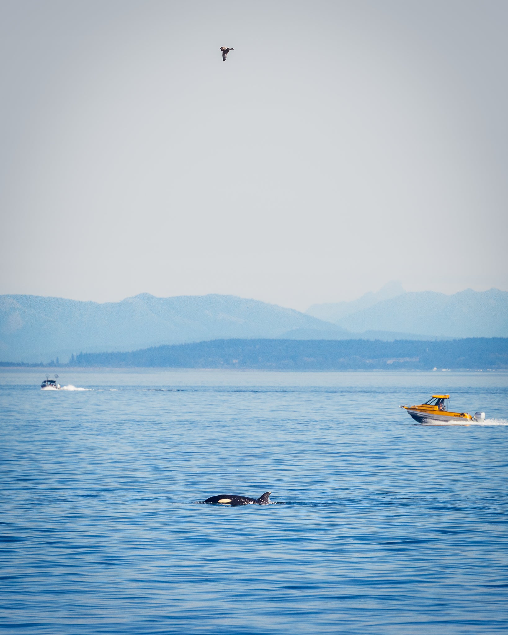 Have always enjoyed photographing baby animals. Never thought a baby orca would make that list! This youngster was born to pod T46B earlier in the year. It moved more clumsily than its adult counterparts, bobbing to the surface often to gulp air 😊